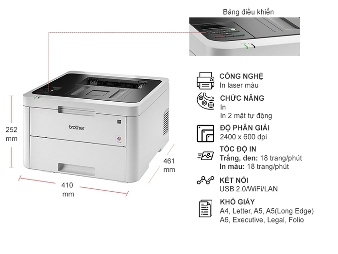 Máy in Brother HL-L3230CDN là sự lựa chọn vô cùng thích hợp khi mày phù hợp với các khổ giấy khác nhau như A4,A5,B5,…